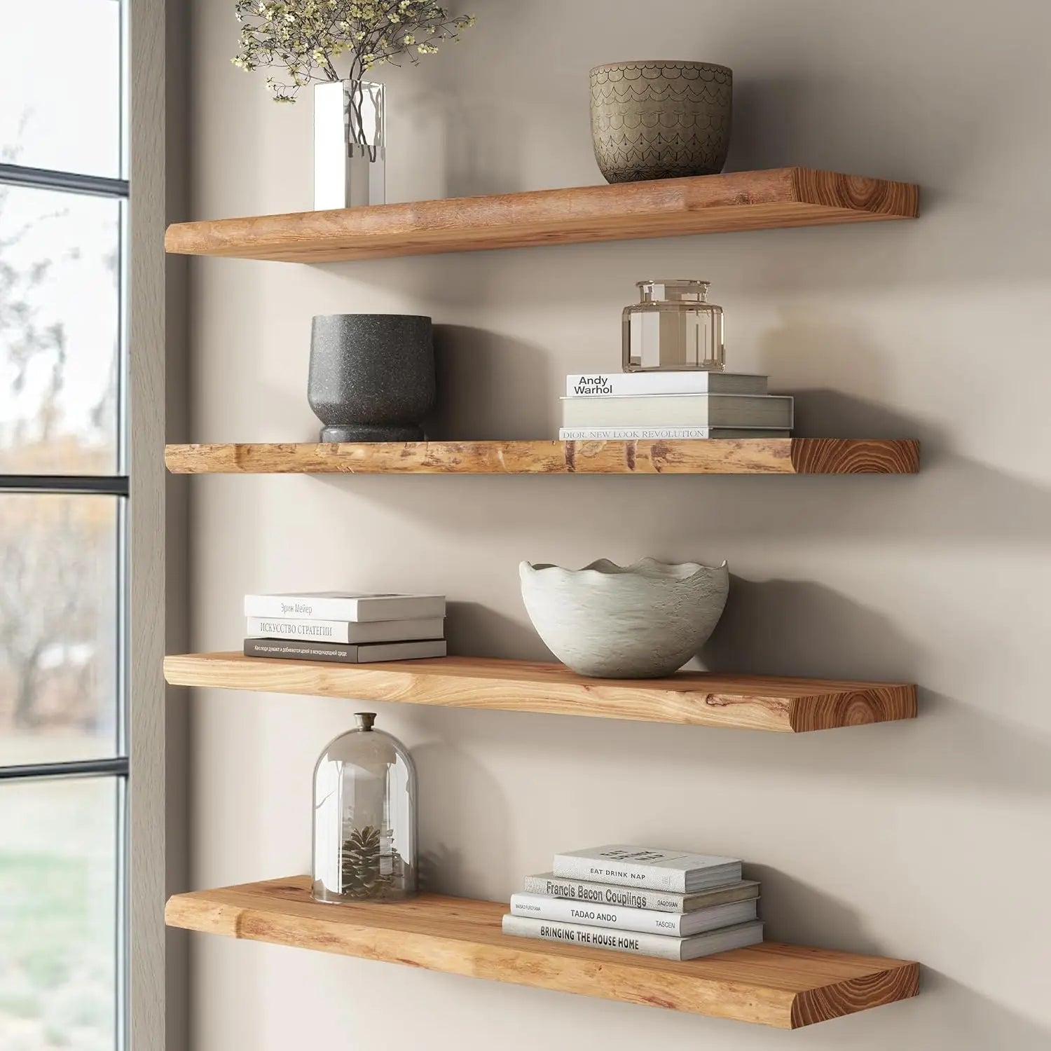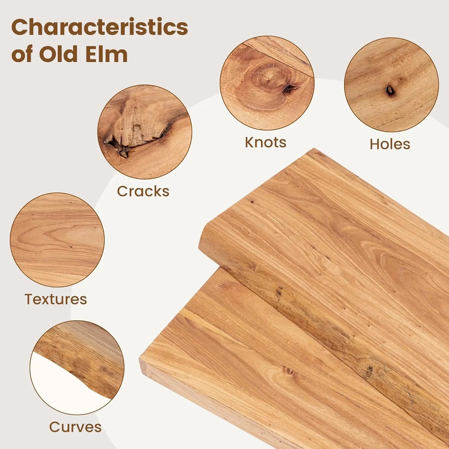 Rustic Elm Wood Floating Shelves for Wall, Live Edge 36"W x 9.2"D x 1.4"H, Set of 2 with Invisible Bracket, Wall Mounted Storage